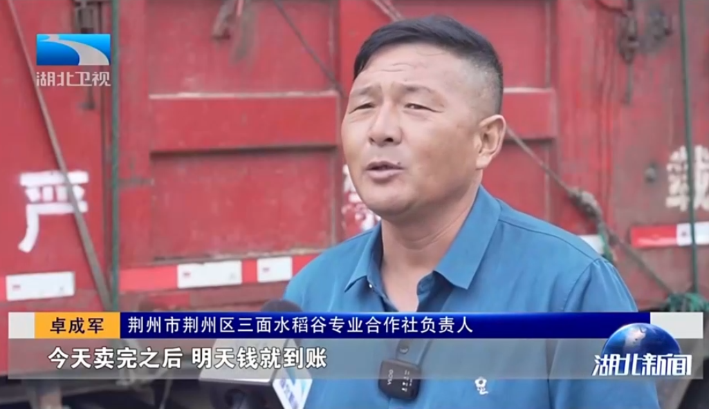 荆州市荆州区三面水稻谷专业合作社负责人卓成军:“这里是一体化收购,方便快捷,资金回笼快捷一些,今天卖完之后,明天钱就到账。”