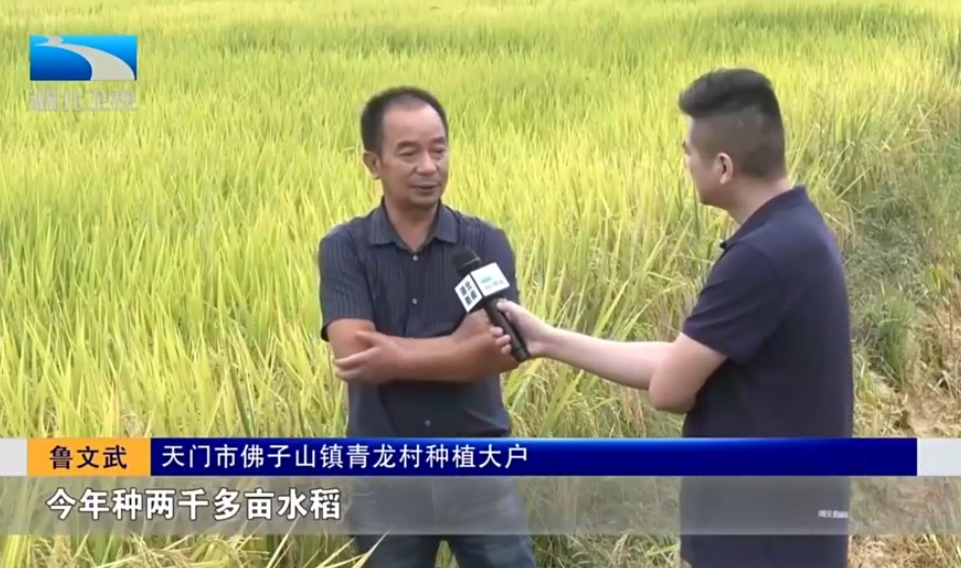 天门市佛子山镇青龙村种植大户鲁文武:“今年一亩地比往年增收两三百斤,今年种的2000多亩水稻,和去年相比,能增收50万块钱左右。”