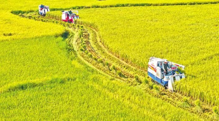 秋分时节我国大部分地区开始秋收、秋耕、秋种的“三秋”忙碌田间地头尽是欢声笑语和洋溢着丰收的喜悦