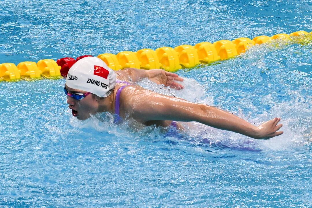 张雨霏,破纪录夺冠! 2023-09-24 20:22 人民网 0 9月24日,在杭州亚运会游泳女子200米蝶泳决赛中,张雨霏以2分05秒57打破亚运会纪录并夺得冠军。这是杭州亚运会游泳项目产生的第一枚金牌。俞李妍获得一枚银牌。 来源:视觉中国 祝贺!
