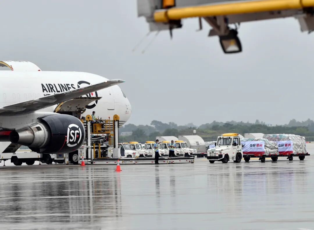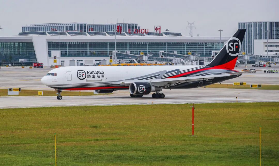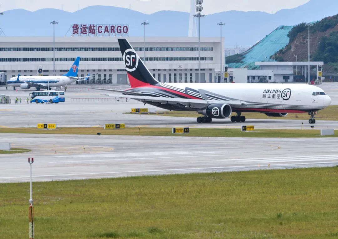 首趟顺丰货运飞机启运(记者李辉 摄)