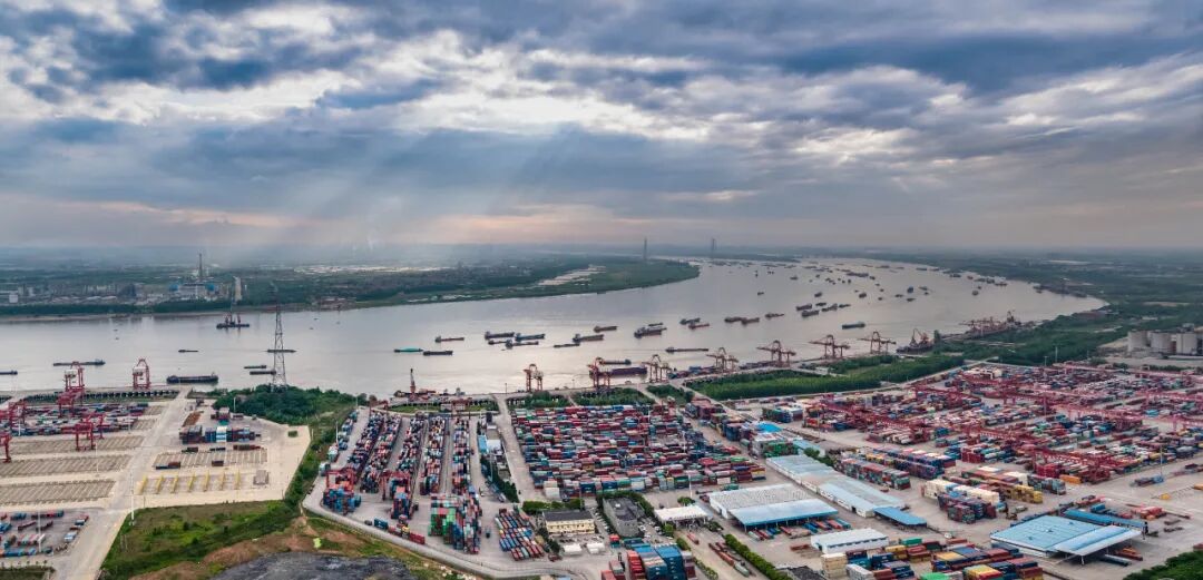 武汉天兴洲以东70公里长江岸线上,滚滚长江留下一个深水良港,阳逻港在此巍然矗立。