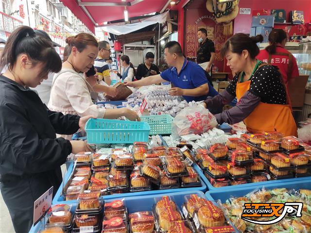 除了月饼,荆州特色美食矮子馅饼和九皇饼也十分受欢迎,门前都排着长队,成为中秋佳节大家送人、亲朋团圆的另一种选择。