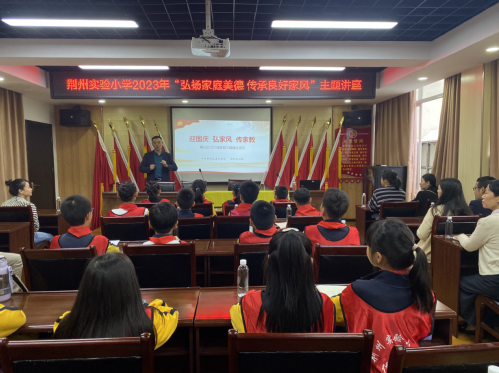 江汉风报道:9月28日,中共荆州区委文明办、荆州区妇联联合荆州实验小学开展“迎国庆 弘家风 传家教”家庭文明建设主题活动。