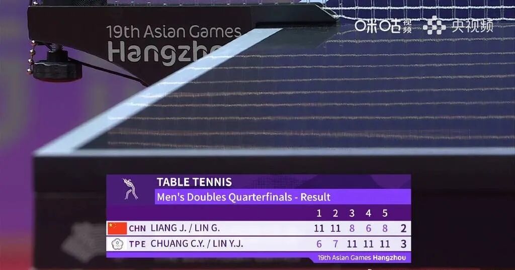 9月30日,在杭州亚运会乒乓球项目男子双打四分之一决赛中,中国组合梁靖崑/林高远以2比3不敌中国台北组合庄智渊/林昀儒,无缘半决赛。