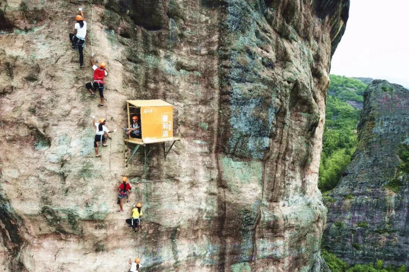近日,一段“最不便利的便利店”视频引发了网友热议,视频显示,在一座几乎垂直于地面的悬崖处,有一个小屋被安置在崖壁上,不少攀岩者从这个小屋经过时,可以从小屋内的工作人员处获得饮料等补给。
