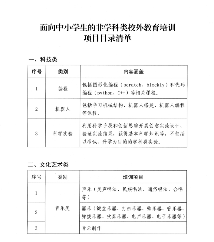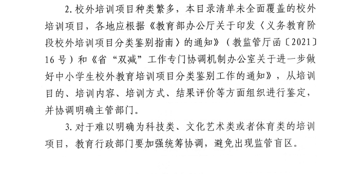 近日湖北省教育厅湖北省科技厅湖北省文化和旅游厅湖北省体育局联合研究制定了《面向中小学生的非学科类校外教育培训项目目录清单》目录清单里的81个项目可直接认定为非学科类培训项目