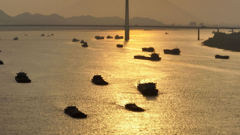 这是6月14日拍摄的长江国家文化公园九江城区段(无人机照片)。新华社记者 万象 摄