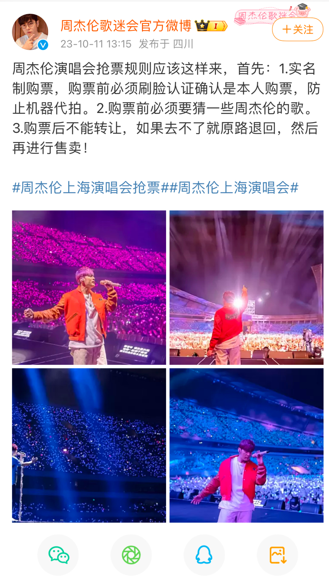 周杰伦歌迷会官方微博截图。