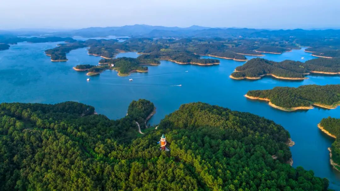 随县封江口水库是鄂北工程唯一在线调节水库,景色秀丽,主体水质常年达到Ⅱ类标准。(湖北日报全媒记者 陈勇 摄)