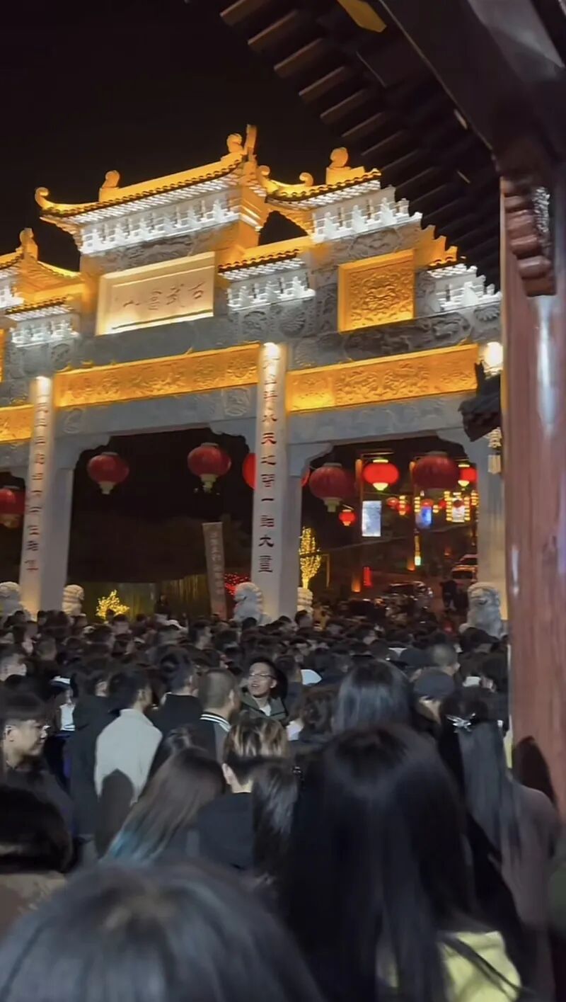 买了古武当山景区夜爬优惠票的林先生说,以上视频里看到的只是门口的景象,进门之后依旧是拥挤不堪,游客都挤在一起了根本难以往前走。