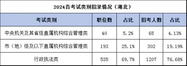 今年中央机关及省级直属机构职位招40个,占总职位数的5.2%,招录人数65人,占总招录人数的4.13%;地市级职位招193个,占总职位数的25.1%,招录人数302人,占总招录人数的19.19%;行政执法类职位535个,占总职位数的69.7%,招录人数1207人,占总招录人数的76.68%,今年行政执法类职位依然是“主力军”。