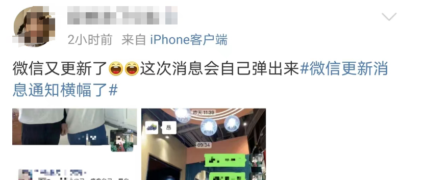 这次,微信对消息弹窗进行了升级优化,在微信打开聊天页面、朋友圈时也能收到新消息显示了。