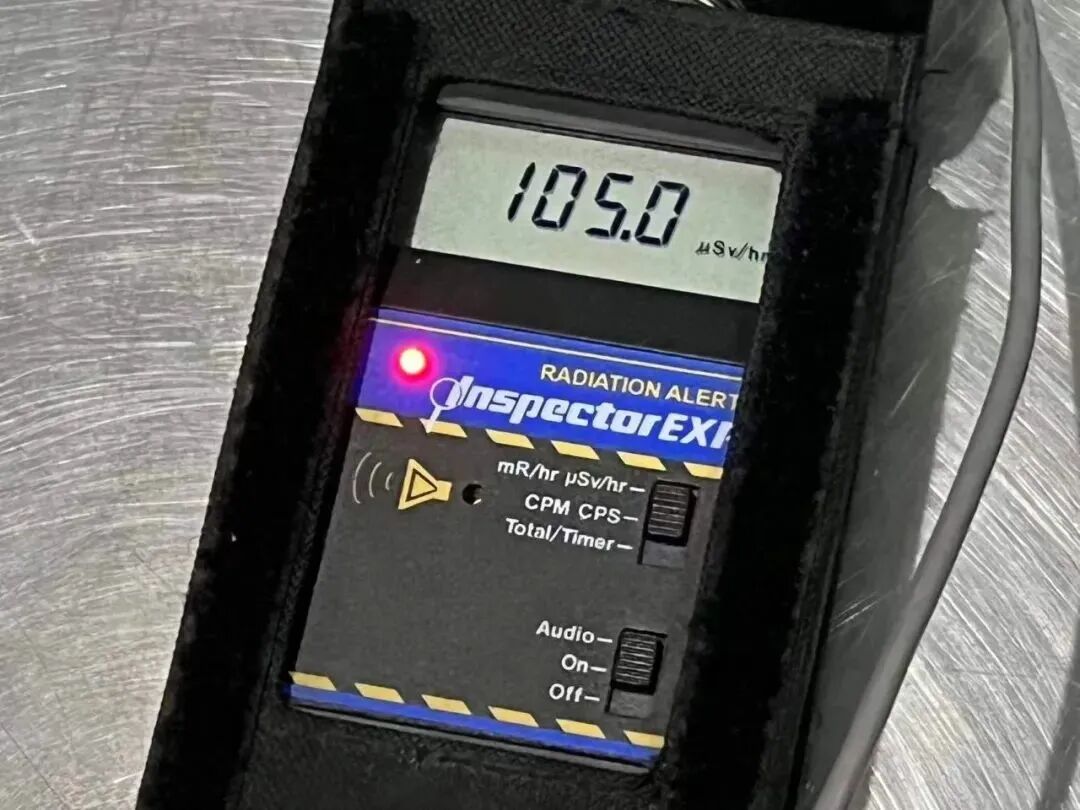 经仪器检测,这块所谓的“能量石”,辐射剂量峰值已达到112微西弗每小时,超过自然界辐射标准近1000倍。通俗地讲,把这块石头带在身上一天,辐射总量与做近百次胸片检查相当。