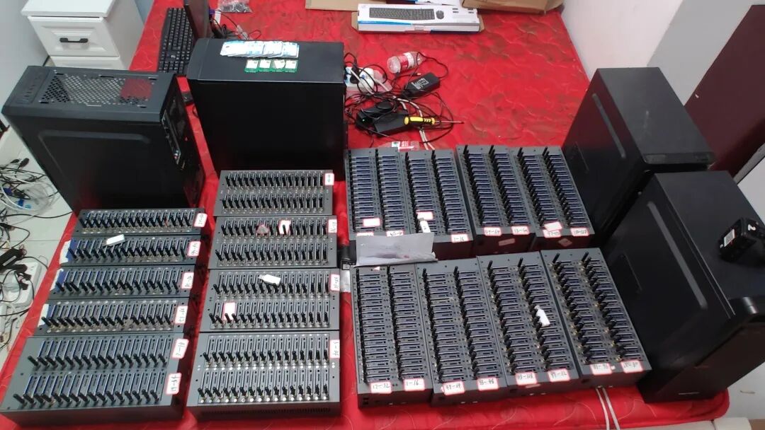 掌握线索后,江北区公安分局立即开展调查,郑某、吴某、李某和罗某4名犯罪嫌疑人先后落网。民警在现场查获了猫池设备4组、台式电脑3台、笔记本电脑1台、手机5台、电话卡千余张。