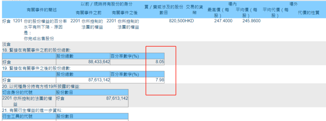 2023年3月31日,减持248万股比亚迪H股,平均价格217.67港元/股。