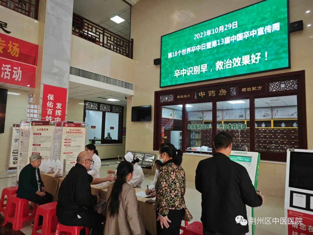 2023年10月29日是第18个“世界卒中日”,主题是“卒中识别早,救治效果好!”。为进一步提高居民脑卒中防控意识,倡导脑卒中的早发现、早诊断、早治疗,降低脑卒中发病率、复发率、致残率及死亡率,推进心脑血管疾病预防工作,荆州区中医医院内科二病区在门诊大厅进行脑卒中健康义诊活动。