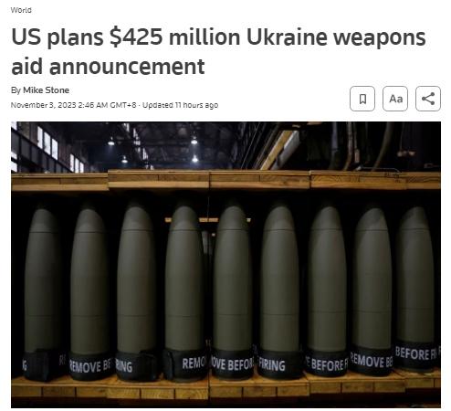中新网11月3日电 据路透社2日援引消息人士报道,美国计划于当地时间3日,宣布向乌克兰提供一揽子4.25亿美元的军事援助,其中包括用于对抗无人机的导弹和弹药。