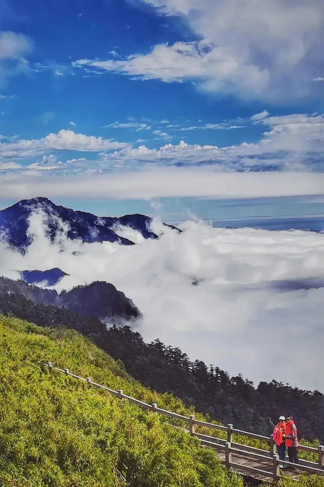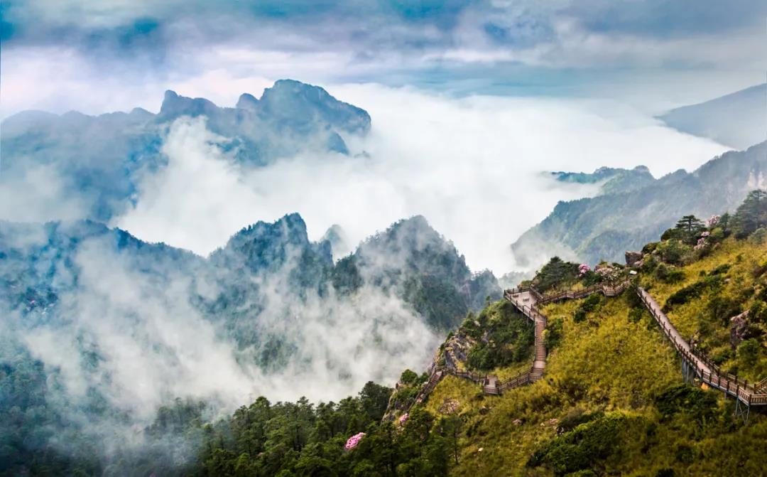 你要写“殷勤报秋意,只是有丹枫”的十里画廊天燕,写每当雨过天晴云雾汇聚谷底上下冷暖空气对流时,阳光照在云雾之上几经折射形成的“佛光”,写山峦叠峰,高低错落,相辅相生,从山脚到山腰俨然一幅冷色与暖色交融的油画,写站在美轮美奂的彩虹桥上感受变幻莫测的云海,你是何种感受?
