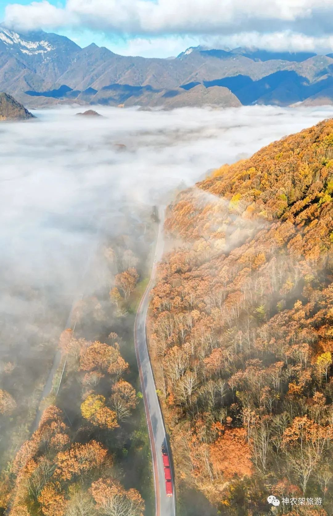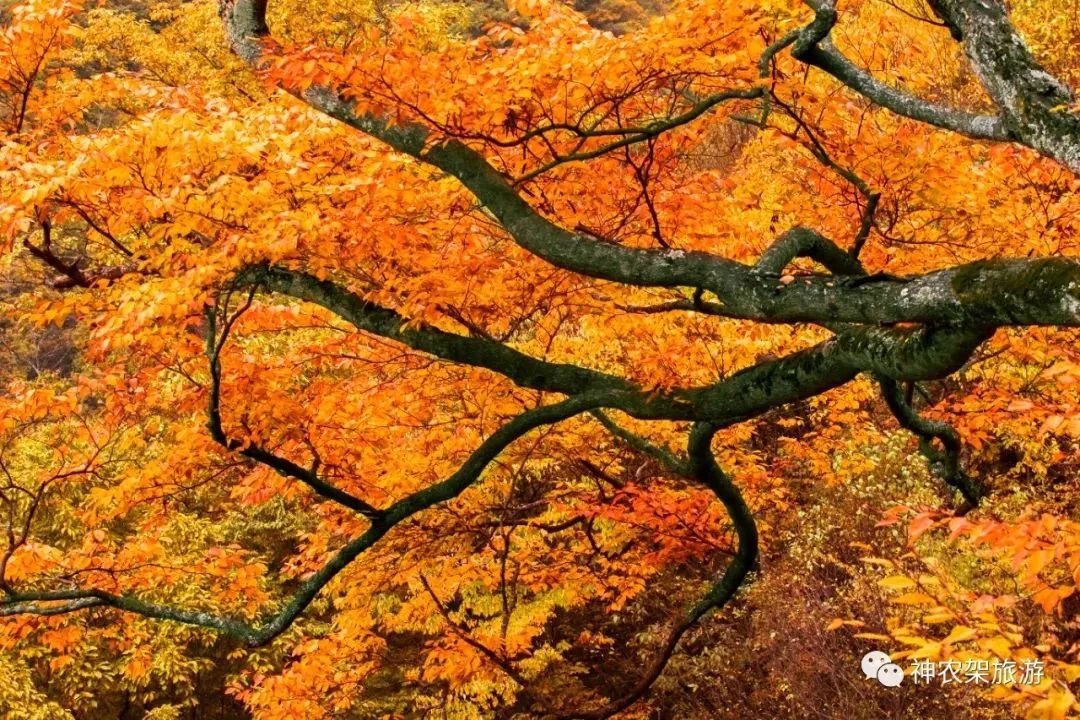 你要写有“华中屋脊”之称的神农顶,写它漫山彩林枫叶挂枝头,写它出席神农架每一个秋日的盛放,写它“树树皆秋色,山山唯落晖”的华丽壮美,写一眼望不到边的秋色,写枫叶满枝地醉倒在秋风里,写它向你传达最美的问候,写期待与你相约在神农架的秋日时光。