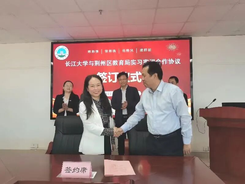 签约仪式在长江大学举行。长江大学教师教育学院院长张艳红、副院长杜光友,荆州区副区长关勇,区教育局负责人参加活动。