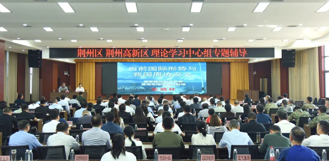 学习特邀中国人民解放军海军指挥学院原军事战略学教授、博士生导师张晓林,荆州高新区党工委副书记,荆州区委常委、组织部部长王勇分别就“当前国际形势与我国周边安全”“深入推进共同缔造 助力两区融合发展”等内容进行专题辅导。
