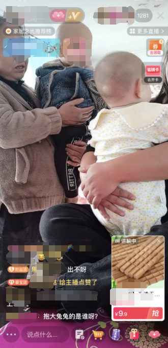 记者注意到,网络上有多个视频账号上门拍摄“兔兔”一家的情况。有近5万粉丝的短视频博主“快乐小彪弟儿”账号中,有多个视频以“兔兔”为主角。11月14日,该博主抱着“兔兔”直播售卖商品。记者尝试联系该博主,但电话无人接听。