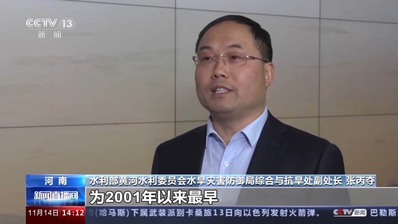 水利部黄河水利委员会水旱灾害防御局综合与抗旱处副处长 张丙夺:受冷空气和上游来水影响,今年流凌日期较常年偏早6天,为2001年以来最早,黄河正式进入2023年至2024年度凌汛期。我们将加强防凌调度和值班值守,做好防凌相关工作。