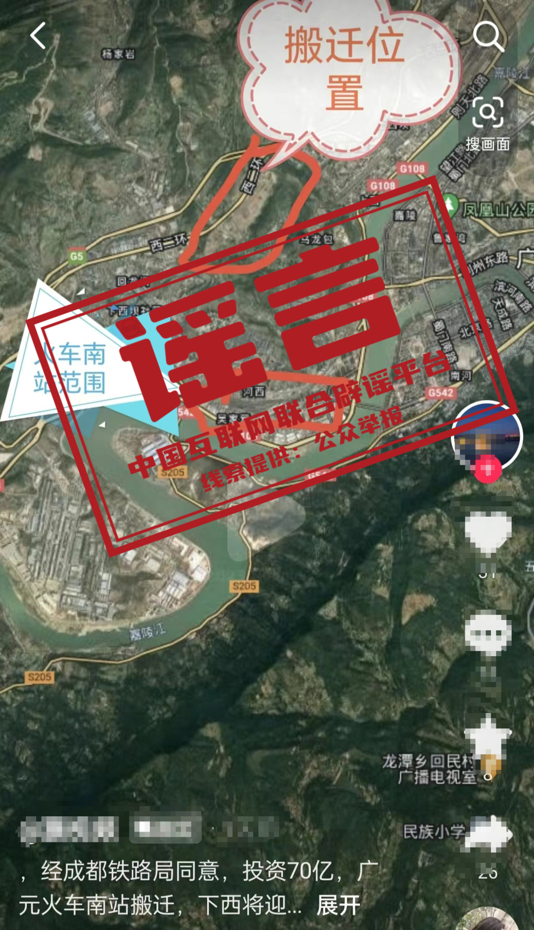 真相:11月13日,有网民在某网络平台发布视频,称“经过成都铁路局同意,将投资70亿元搬迁广元南站”,引发市民关注。14日,成都铁路局广元车务段相关负责人在接受记者采访时表示,该条信息属于谣言。广元南站是中国铁路成都局集团有限公司管辖的货运编组一等站,是四川地级市中唯一的编组站,也是四川省内除成都市货运编组站外最大的货运编组枢纽站。对于搬迁问题,四川省发改委调研组曾经来过现场进行考察,但由于牵涉面广,搬迁难度较大,广元南站是否搬迁还未正式确定。网上所发布的广元南站将要搬迁的信息多为不良房地产开发商或者中介商为了炒房而发布的不实信息。(来源:@广元日报看广元)