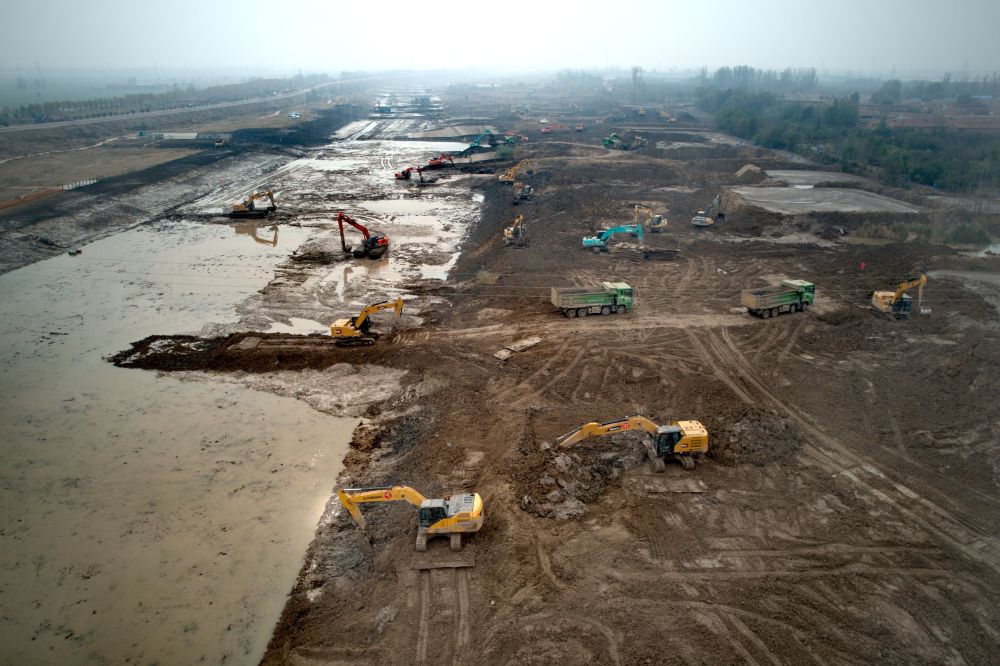 11月15日,山东省级水网规划建设中的德州马颊河治理施工现场。新华社记者 刘诗平 摄