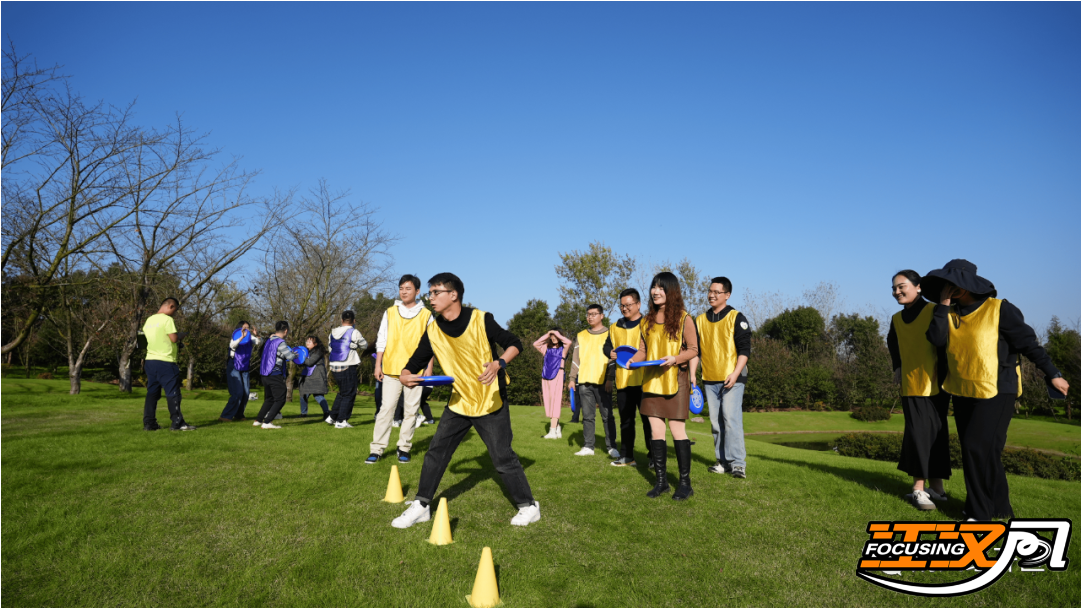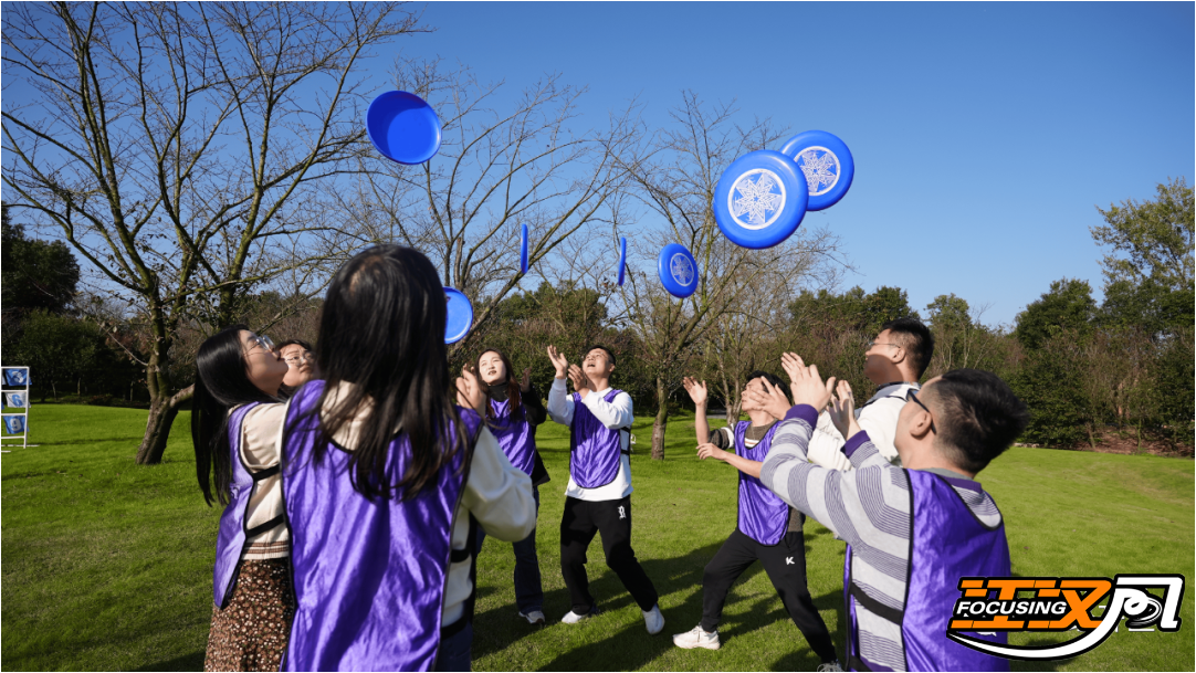 青年们激情四射,大胆挑战“飞盘九宫格”,瞄准目标开启“飞盘掷准赛”,接力完成“飞盘跳方格”,共同协作上演“飞盘移形换位”……