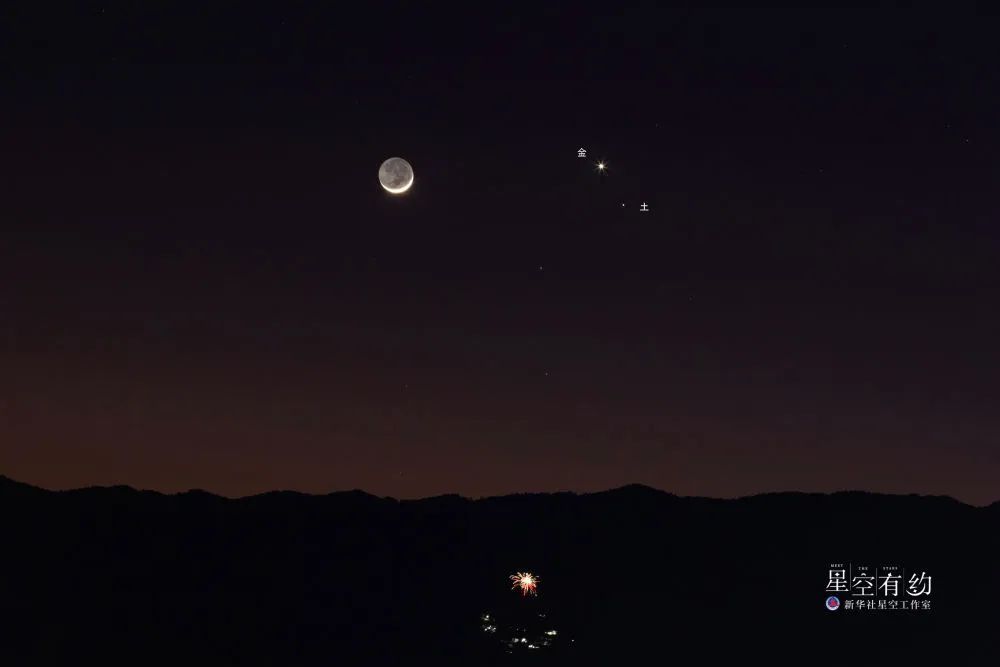 云南星空摄影爱好者胡凯华2023年1月23日在云南临沧拍摄的金星土星伴月。(本人供图)