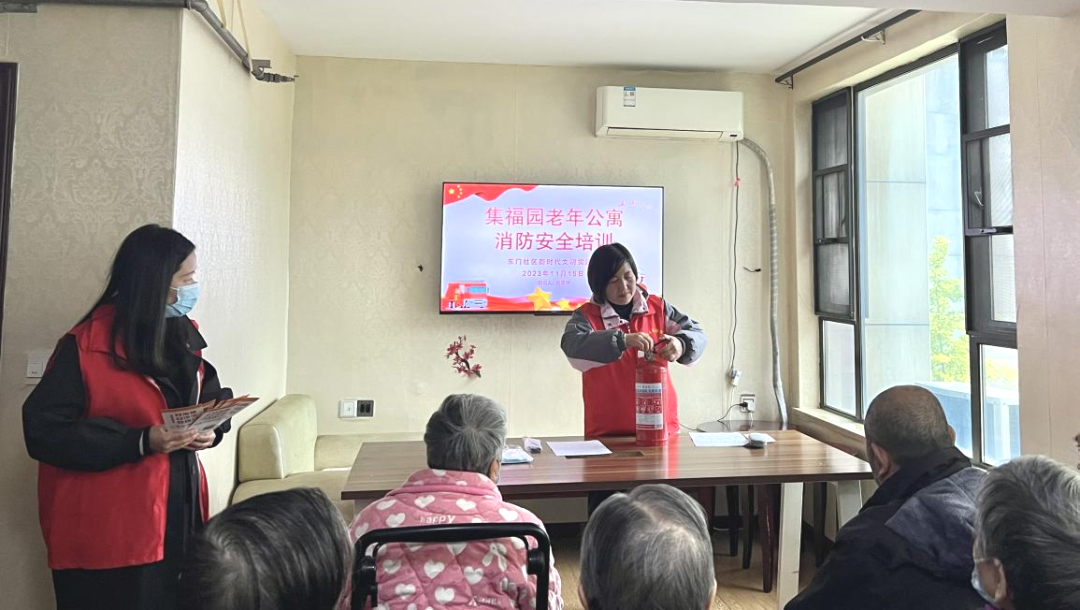 11月15日,荆州区东门社区新时代文明实践站联合集福园老年公寓开展消防安全培训。