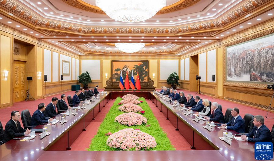 习近平指出,中俄两国互为最大邻国,同为联合国安理会常任理事国,拥有广泛共同利益。今年我同普京总统两度面对面深入交流,就深化中俄全面战略协作和各领域务实合作达成了许多新的共识。明年是中俄建交75周年,中方愿同俄方一道,不断深化永久睦邻友好、全面战略协作、互利合作共赢的双边关系,为两国发展振兴注入新动力,为世界繁荣稳定提供更多稳定性。