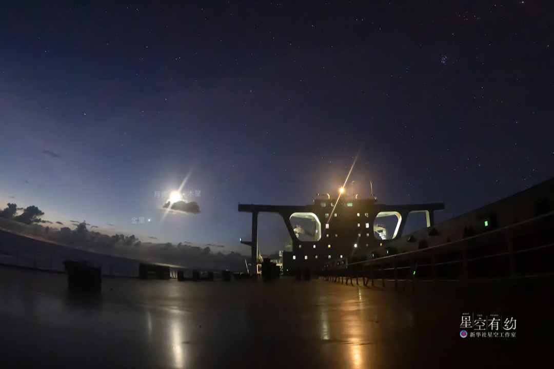 江苏星空摄影爱好者邵曙光2023年2月22日在大西洋上行进的“海珠荣兴”轮上拍摄的金星、木星合月。(本人供图)中国天文学会会员、天津市天文学会理事赖迪辉介绍,太阳系中的八大行星大约每个月都会出现一次合月现象,但金星和木星上演的合月相对更受瞩目,这是因为在绝大部分时间里,人们肉眼可见的行星中金星和木星的亮度排名分别为第一和第二,视觉效果不言而喻。