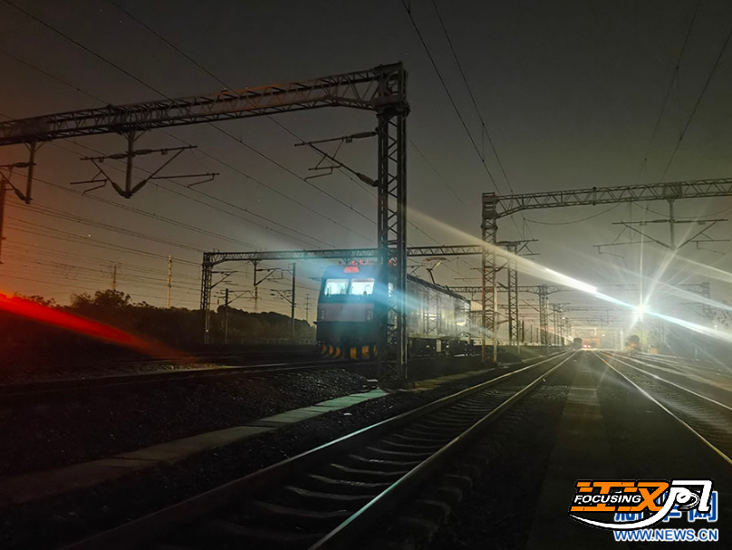 图为X8015次中欧班列11月22日凌晨从武汉吴家山站开出。新华网发 邢晨摄