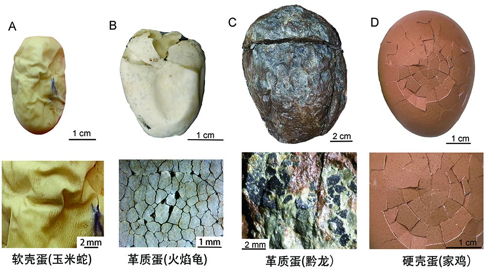 为了研究恐龙及其他爬行动物在繁殖方式上的宏演化规律,研究人员在前人的基础上收集了爬行动物210个类群,并对所有类群的蛋壳类型和蛋壳厚度等指标进行了统计,建立迄今最大的爬行动物数据库。在此基础上进行了祖先状态恢复分析,结果表明最早的恐龙蛋为革质蛋,外壳柔软似皮革,柔韧不易碎,不同于先前的软壳蛋(无或极薄钙质层)和硬壳蛋的起源。鳄类、恐龙和翼龙在演化的过程中蛋的相对大小呈现递增的趋势。而在蛋的形态变化上,最早的恐龙为亚圆形或椭圆形,兽脚类恐龙明显有延长的趋势。另外还发现大多数爬行类在演化的过程中均有蛋壳增厚的趋势。