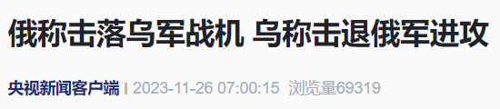 据央视新闻客户端消息,当地时间25日,俄罗斯国防部通报称,过去24小时,俄军在库皮扬斯克、红利曼、扎波罗热等方向击退乌军进攻。俄军在不同战线还摧毁乌军2座航空弹药库、多辆坦克以及雷达站和火炮等。俄军防空部队击落乌方2架米格-29战机,拦截18架无人机。