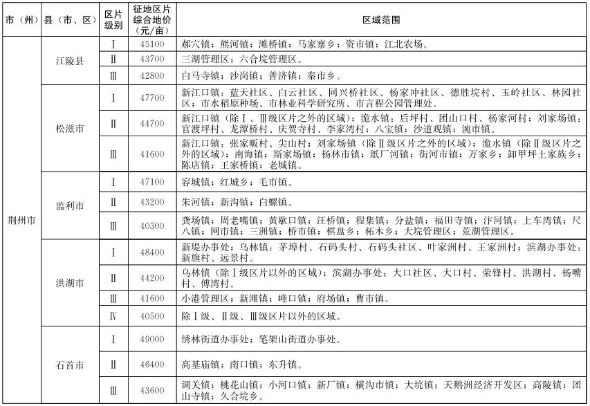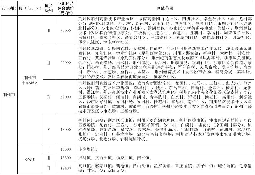 近日,湖北省人民政府重新公布全省征地区片综合地价标准,通知全文如下。