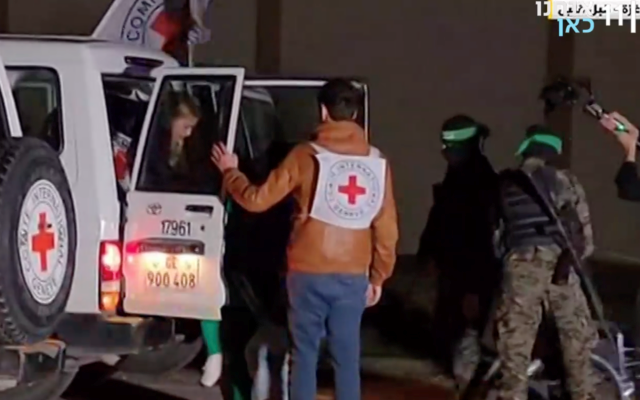 △27日晚,哈马斯将以色列被扣押人员转交给红十字国际委员会