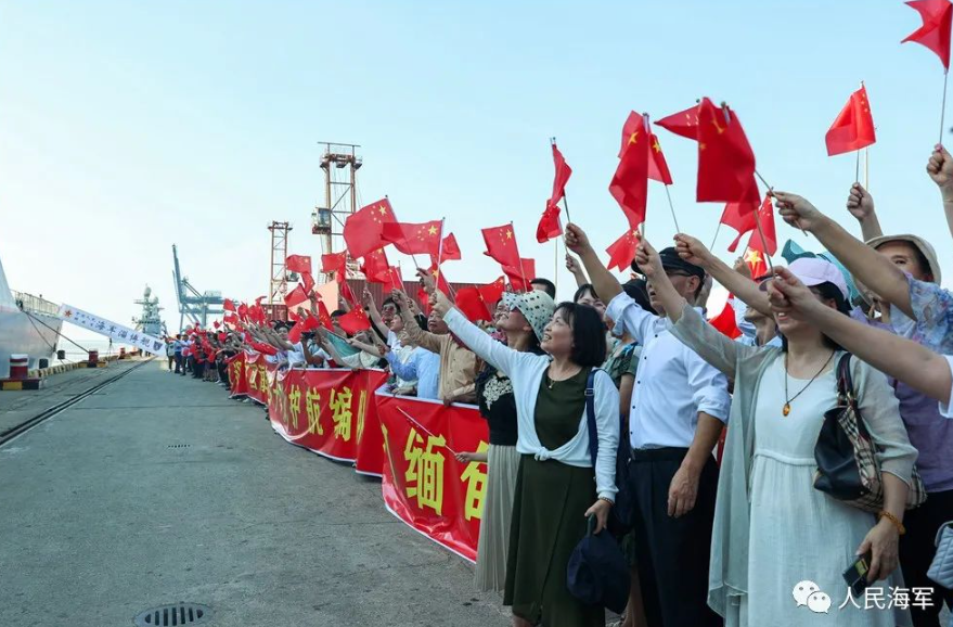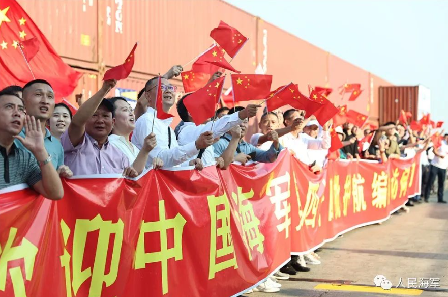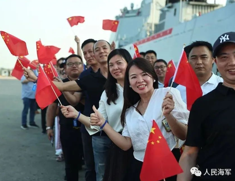 当地时间11月27日下午,海军第44批护航编队访问缅甸仰光。图为码头欢迎人群挥舞五星红旗,热烈欢迎海军官兵。方思航 摄