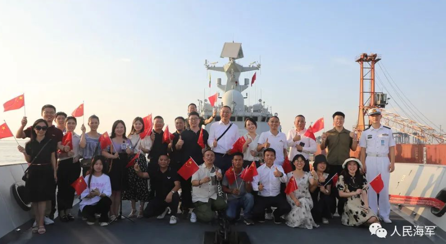 11月27日下午,海军第44批护航编队访问缅甸仰光。图为华人华侨在舰艇前合影留念。姜霞 摄 据悉,这是中国海军舰艇编队第6次访问缅甸期间,编队指挥员将拜会缅军地高层领导慰问当地小学师生编队官兵将与缅海军官兵进行专业交流、文体竞技以及相互参观军事设施等活动淄博舰、荆州舰将举行舰艇开放并举办甲板招待会