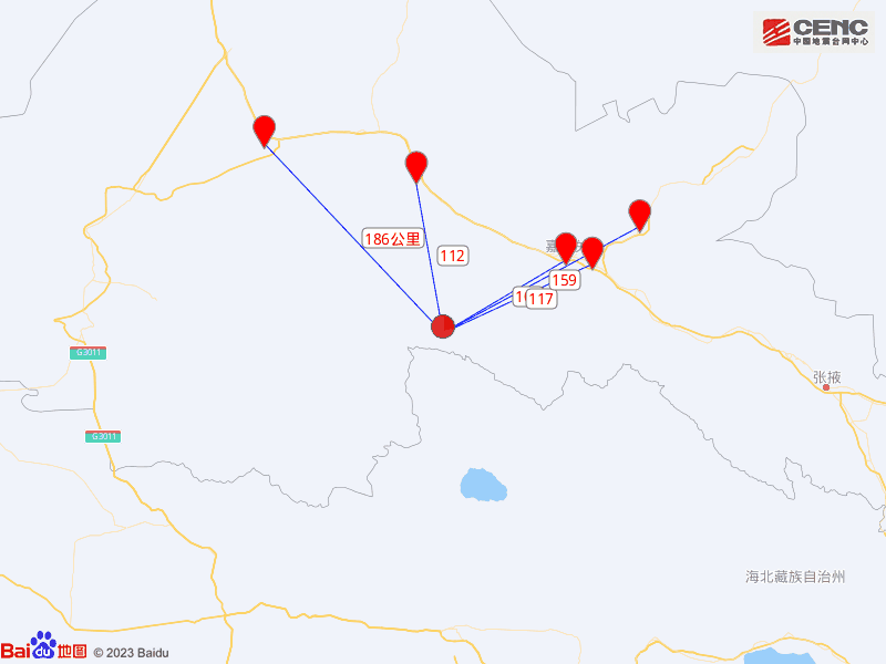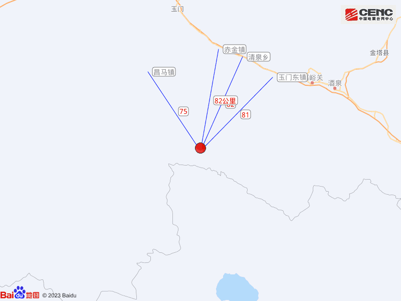 周边县城:震中距嘉峪关市102公里、距玉门市112公里、距肃州区117公里、距金塔县159公里、距瓜州县186公里,距嘉峪关市102公里,距西宁市496公里。