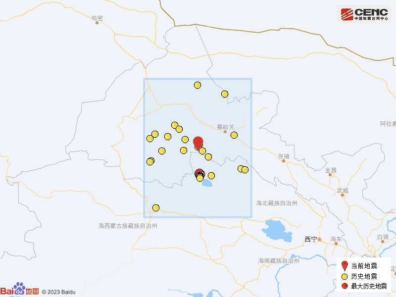 历史地震:根据中国地震台网速报目录,震中周边200公里内近5年来发生3级以上地震共43次,最大地震是2022年3月26日在青海海西州德令哈市发生的6.0级地震(距离本次震中89公里),历史地震分布如图。