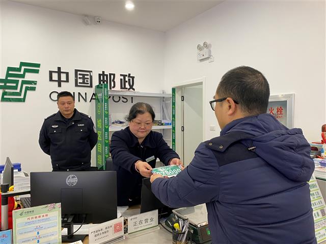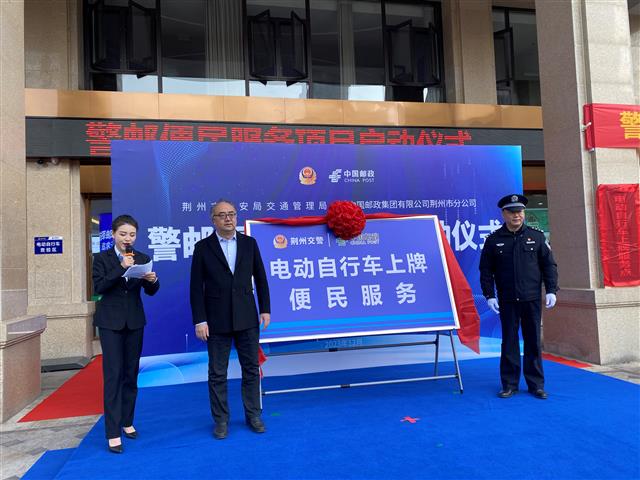 12月4日下午3点,在沙北邮政所,一个简单的仪式后,中国邮政集团有限公司荆州市分公司党委书记、总经理潘彭恩与荆州市公安局党委委员、副局长何俊共同为邮政网点代办电动车号牌业务举行揭牌仪式,标志着邮政网点代办电动车号牌业务正式实行。在现场,市民吴先生通过填写材料,审车等手续,不到20分钟,就领到了牌照。今天,在沙北邮政所办理的号牌就有十多个。