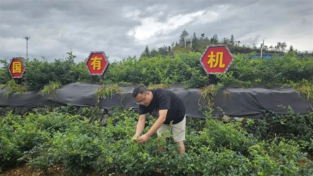 在来凤县革勒车镇桑树坪村,广袤的山野间藤茶整齐排列,清风徐徐,美景令人心旷神怡。在茶园里,刚和母亲从阿联酋回国的向少华没怎么休息,又下到田间和农户了解藤茶的生长情况。山顶的观景平台上有藤茶姐姐新的直播基地,除了直播基地,这里还有民宿配合附近的露营基地,打造藤茶旅游产业,持续为茶农拓宽收入来源。