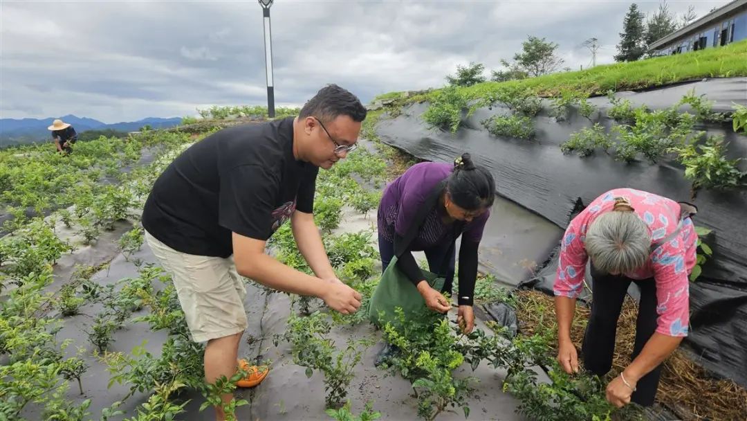△向少华和茶农一起干活