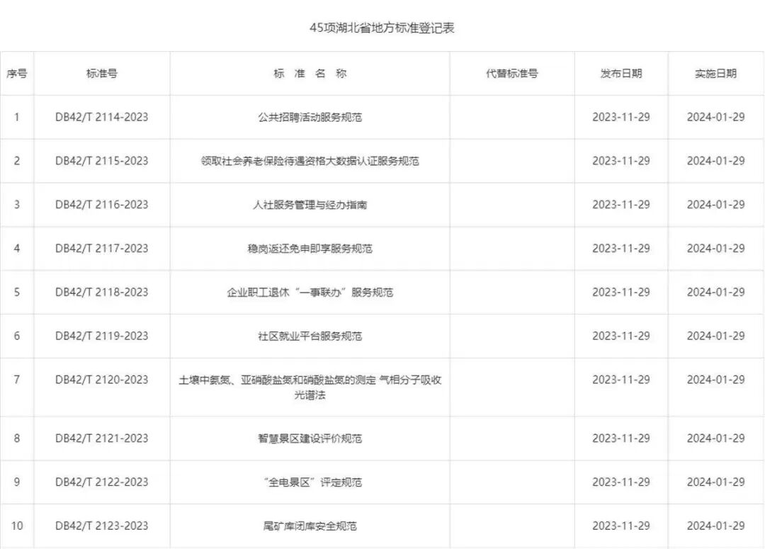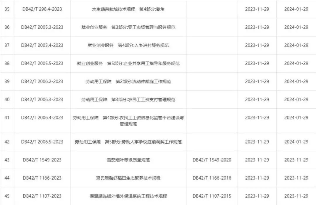 12月5日从湖北省市场监管局获悉,45项湖北省地方标准“上新”。