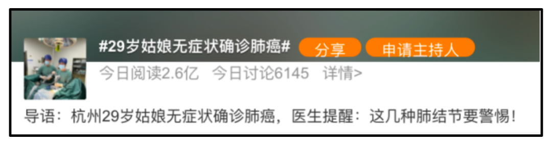 “29岁姑娘无症状确诊肺癌”登上热搜