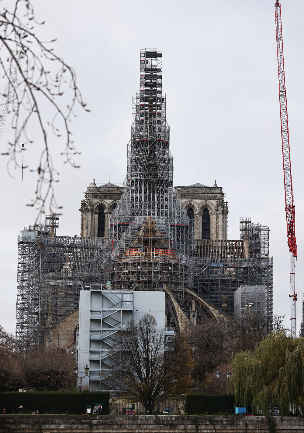 巴黎圣母院始建于12世纪,是法国最具代表性的古迹之一。2019年4月15日,巴黎圣母院的屋顶和塔尖在突发大火中被烧毁,但主体建筑得以保存。法国议会两院曾通过法案,要求重建工作确保巴黎圣母院恢复原貌。2020年,巴黎圣母院大火一周年纪念日时,马克龙承诺5年内完成巴黎圣母院修复工作。